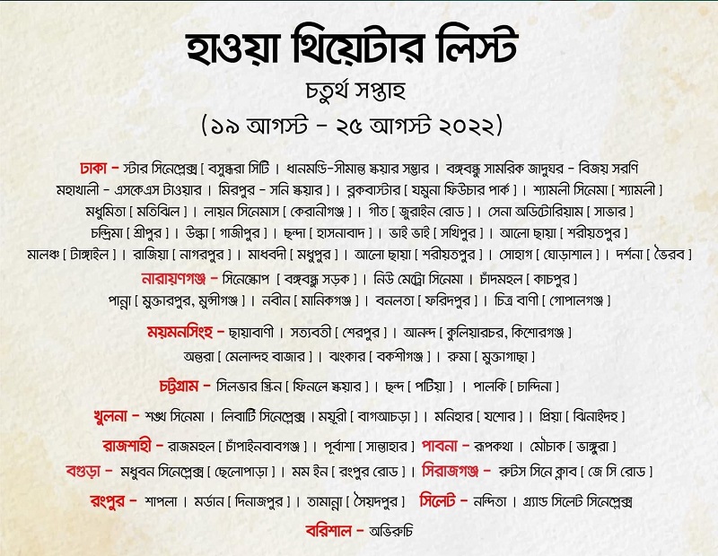 চতুর্থ সপ্তাহে আরো বেশি হলে ‘হাওয়া’, নিন তালিকা