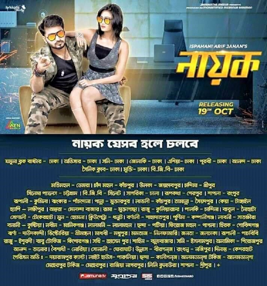 শুক্রবার বড় পরিসরে মুক্তি পেয়েছে বাপ্পী চৌধুরী ও অধরা খান জুটির ‘নায়ক’ ছবি। পরিচালনা করেছেন যুগল নির্মাতা ইস্পাহানী আরিফ জাহান। ঢাকার অভিসার, সনি, জোনাকি, সৈনিক ক্লাব, এশিয়া, পূরবী, বিজিবি, মুক্তি, যমুনা ব্লক বাস্টারসহ ৭১টি সিনেমা হলে মুক্তি পেয়েছে নায়ক।
