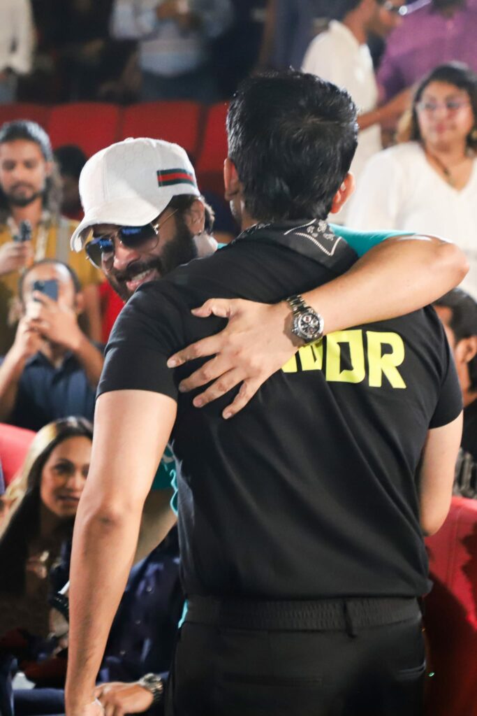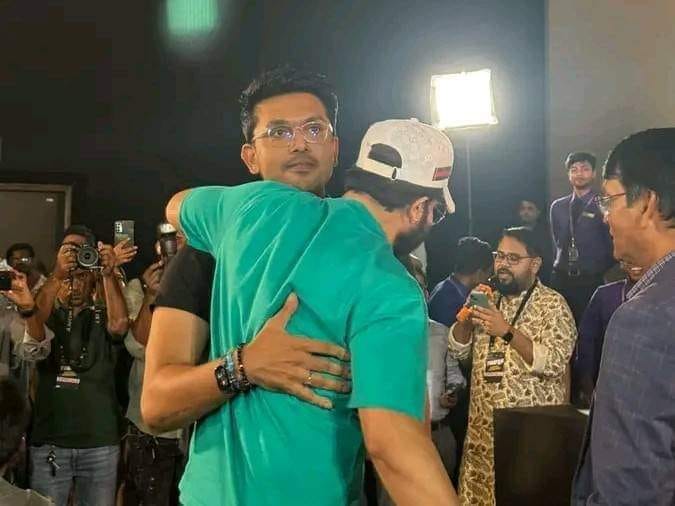 এরপর ‘তুফান’-এর বিশেষ প্রদর্শনীতে হাজির হতে দেখা যায় আরিফিন শুভ ও ঐশীকে। যেখানে শুভর ব্ল্যাক টিশার্টে ‘নূর’ লেখা রয়েছে। সেখানে পরষ্পরকে জড়িয়ে ধরেন শুভ ও রাফী। এদিন শাকিবকে পা ধরে সালাম করতে গিয়ে আলোচিত হন শুভ।
