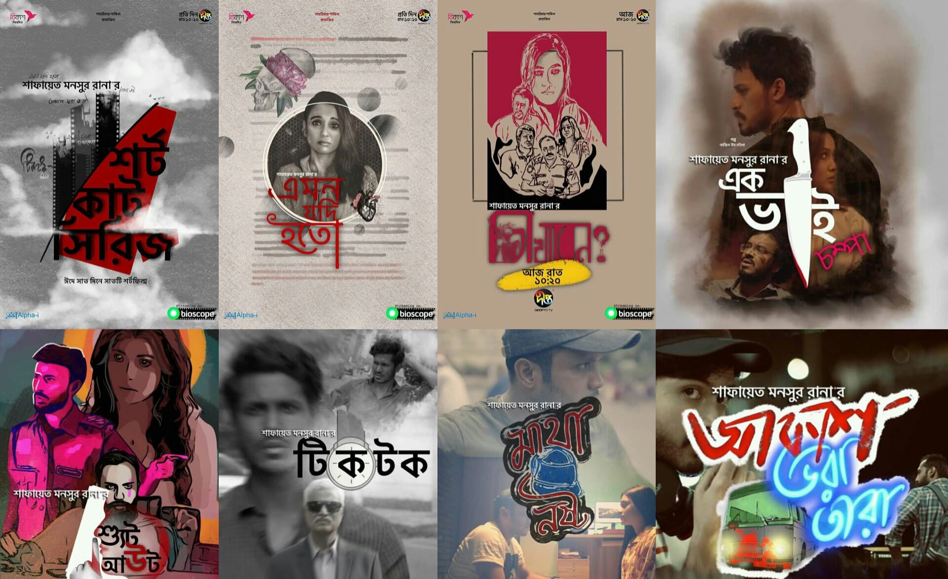 পরিচালক শাফায়েত মনসুর রানা-র পরিচালনায় ঈদের সাতদিনের ৭টি শর্টফিল্ম প্রচারিত হয়েছে। শর্টফিল্মগুলো একটার থেকে আরেকটা আলাদা গল্পে, উপস্থাপনায়। শর্টফিল্মগুলো হলো : এমন যদি হতো, চা খাবেন?, এক ভাই চম্পা, শ্যুট আউট, টিকটক, মাথা নষ্ট ও আকাশ ভরা তারা।