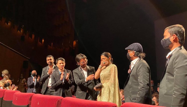 সিনেমা শুরুর আগে থেকেই দীর্ঘ লাইনে অপেক্ষা করছিলেন বিশ্বের বিভিন্ন দেশ থেকে আসা চলচ্চিত্র নির্মাতা, প্রযোজক, কলাকুশলী, সমালোচক ও সাংবাদিকেরা। শুরুর আগে উপস্থাপক মঞ্চে আমন্ত্রণ জানালেন পরিচালক আবদুল্লাহ মোহাম্মদ সাদ এবং নাম ভূমিকায় অভিনয় করা আজমেরী হক বাঁধনকে। এমনিতেই সাদ খুব বলিয়ে কইয়ে নন, তার ওপর এখানে ভাষা বলতে শুধুই ফ্রেঞ্চ। কোনোমতে ইংরেজিতে বললেন শুধু, কানে এসেছেন সেটা এখনও তার বিশ্বাস হচ্ছে না। অবিশ্বাসীর মতই অবশ্যই তাকাচ্ছিলেন প্রায় পূর্ণ ডেবুসির দিকে।