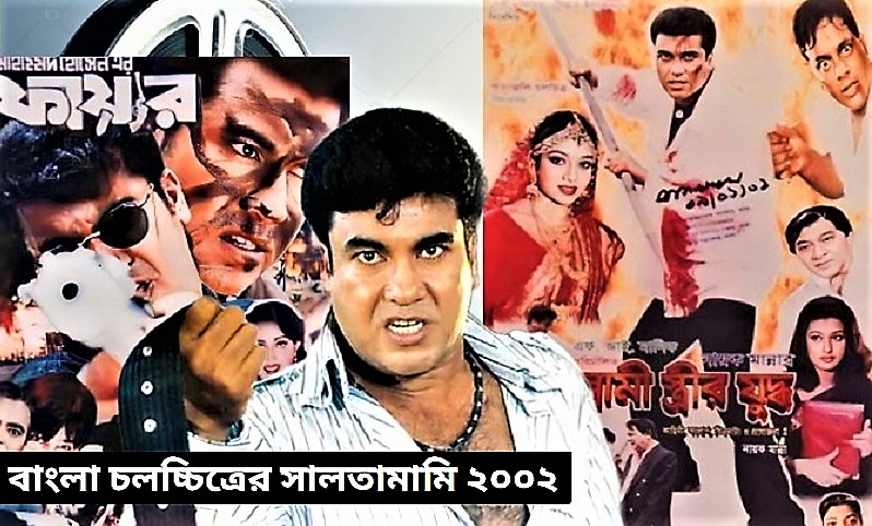 ২০০২ সালে ৮২টি ছবি নির্মাণে বায় হয়েছে ৮২ কোটি টাকা। এর মধ্যে চারটি ছবি সুপার-ডুপার হিট হয়েছে। এই চারটি ছবির মাঝে আছে স্বামী-স্ত্রীর যুদ্ধ, নায়ক ও মাস্তানের ওপরে মাস্তান। এ ছাড়া ‘ফায়ার’ ছবিটিও ব্যবসা করেছে অস্বাভাবিকভাবে। এই ছবিটি ব্যবসা করেছে অশ্লীল দৃশ্য সংযোজন করে- এমন অভিযোগ আছে। ‘স্বামী-স্ত্রীর যুদ্ধ’ ও ‘ফায়ার’ ছবি দুটি ব্যবসা করেছে ৩ কোটি করে ৬ কোটি টাকা। আর ‘নায়ক’ ও ‘মাস্তানের ওপর মাস্তান’ ব্যবসা করেছে ২ কোটি টাকা করে মোট ৪ কোটি টাকা। এ ছাড়া ব্যবসায়িক সাফল্য পাওয়া আরো ছয়টি ছবি ব্যবসা করেছে গড়ে দেড় কোটি টাকা করে মোট ৯ কোটি টাকা। অর্থাৎ ব্যবসাসাফল চলচ্চিত্র থেকে ঘরে উঠেছে ১৯ কোটি টাকা। এ ছাড়া কিছু ছবি ছিল যেগুলো ব্যবসায়িকভাবে সাফল্য অর্জন না করতে পারলেও লোকসান দেয়নি। এমন ছবির সংখ্যা হচ্ছে ১৩টি। এই ১৩টি ছবির প্রযোজকরা ১৩ কোটি টাকা বিনিয়োগ করে সারা বছরে টেনেটুনে ঘরে তুলে এনেছেন ১৩ কোটি টাকা।