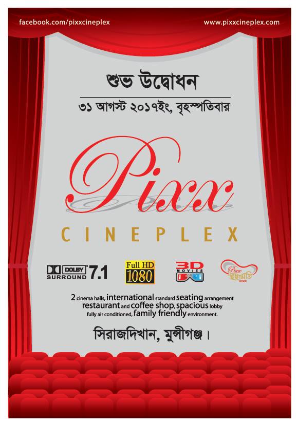পিক্স সিনেপ্লেক্স নামের মাল্টিপ্লেক্স চেইন নিজেদের ফেসবুক পাতায় বৃহস্পতিবার সকালে এ ঘোষণা দিয়েছে। এতে জানানো হয়, মহাসমারোহে ৩১ আগস্ট থেকে সিনেপ্লেক্সটি চালু হবে।