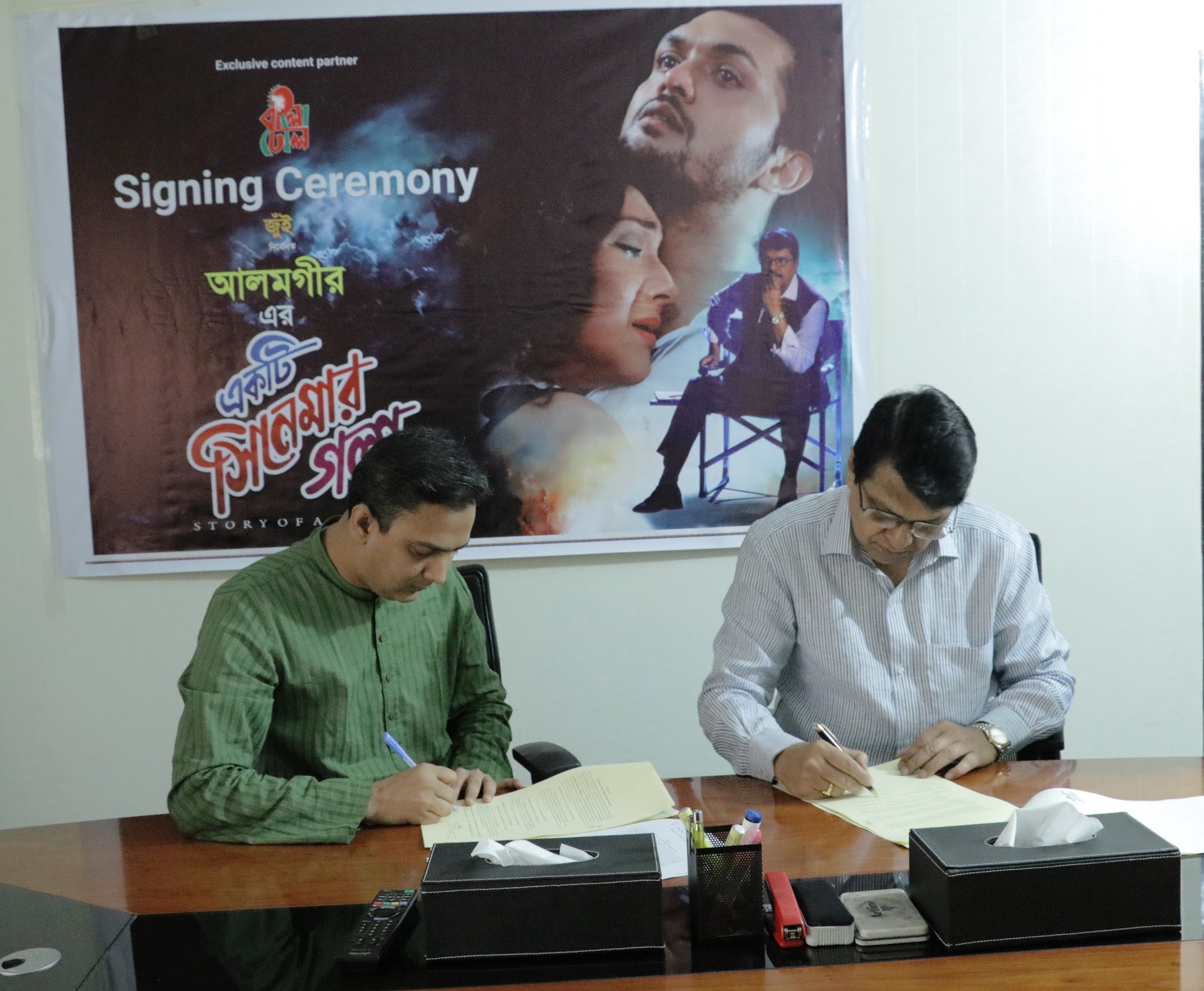 আলমগীরের নিজস্ব প্রযোজনা সংস্থা আইকন এন্টারটেইনমেন্টের ব্যানারে নির্মিত ছবিটির সঙ্গে এবার যুক্ত হলো দেশের অন্যতম অডিও-ভিডিও প্রযোজনা প্রতিষ্ঠান বাংলাঢোল লিমিটেড। ‘একটি সিনেমার গল্প’-এর এক্সক্লুসিভ ডিজিটাল কন্টেন্ট পার্টনার হিসেবে থাকছে বাংলাঢোল। ১১ মার্চ দুপুরে ধানমন্ডিতে প্রতিষ্ঠানটির কার্যালয়ে এ বিষয়ে দুই পক্ষের মধ্যে চুক্তিস্বাক্ষর হয়। এ সময় উপস্থিত ছিলেন চিত্রনায়ক আলমগীর, বাংলাঢোলের ব্যবস্থাপনা পরিচালক এনামুল হক প্রমুখ।