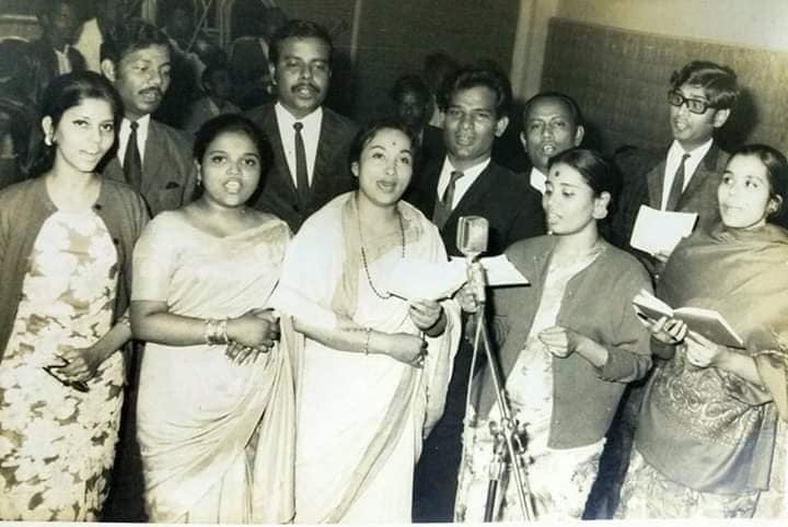 ১৯৭০ সালে ‘জয় বাংলা বাংলার জয়’ গানের রেকডিংএ। আছেন জিনাত রেহানা, ফিরোজা বেগম, আজাদ রহমান, লায়লা মোজাম্মেলসহ অনেকে