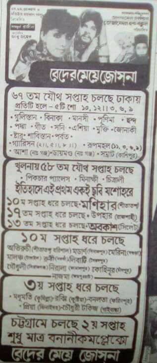 এদিক দিয়ে অবশ্য সাপ্তাহিক চিত্রালী বেশি এগিয়ে থাকত। কিন্তু সেটা তো আর দোকানে ফ্রিতে পড়া যেতো না, যা পড়ার তা কিনেই পড়তে হতো। সেই হিসেবে চিত্রালীও আমার প্রচুর কেনা ছিল। যাই হোক, সেই হিসেবে এক শুক্রবারের ইত্তেফাকে জানতে পারি, ৯ জুন ৮৯ সালে তিনটি সিনেমা মুক্তি পাবে— আলমগীর কুমকুমের ‘সোনার নাও পবনের বৈঠা’ (আলমগীর ও রোজিনা), নায়ক রহমান পরিচালিত ‘নিকাহ্’ (ইলিয়াস কাঞ্চন ও সুচরিতা) ও নতুন পরিচালক তোজাম্মেল হক বকুলের ‘বেদের মেয়ে জোসনা’ (ইলিয়াস কাঞ্চন ও অঞ্জু ঘোষ)।