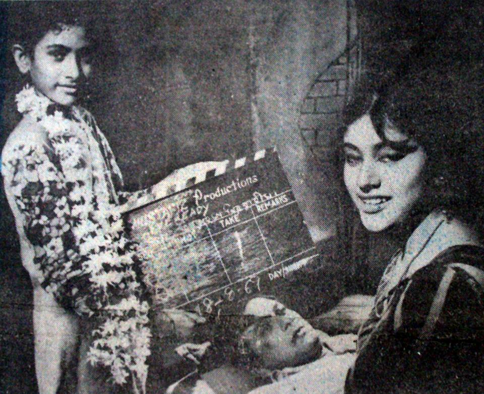 একটি ছবির শুটিংয়ে রাজ্জাক-ববিতা। সঙ্গের শিশুটি পরবরতীকালে নায়িকা গুলশান আর চম্পা