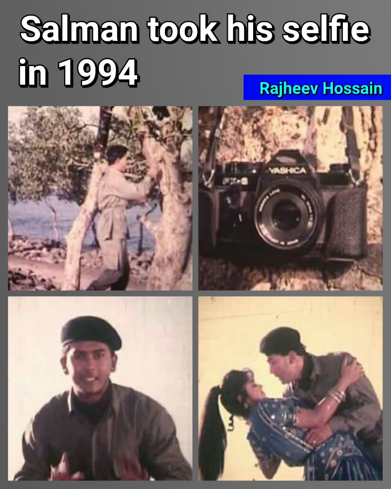 ★★ A selfie a day…. keeps sadness away! আজকাল সেলফি না তুললে অনেকের রাতে ঘুম আসেনা অথচ ২৩ বছর আগে অনেকে সেলফি শব্দটার সাথেই পরিচিত ছিলনা। “অন্তরে অন্তরে ” সিনেমায় সালমান গাছের সাথে ক্যামেরার বেল্ট বেধে Self timer অন করে নিজের ছবি নিজেই তুলেছিলেন। সেলফি যেহেতু Self-Portrait Photograph তাই সেটা সালমানের সেলফি ছিল। সালমানের মধ্য ক্রিয়েটিভিটি ছিল মানতে হবে।